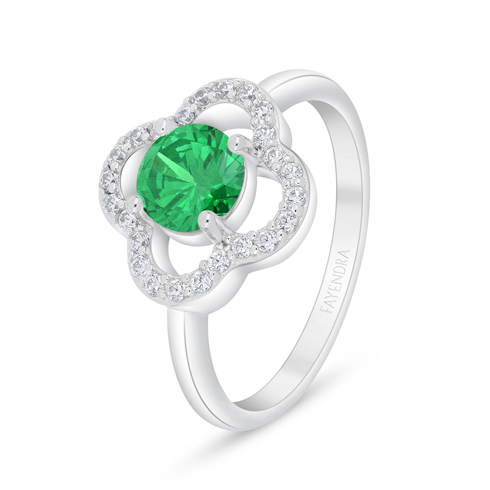 خاتم من الفضة الخالصة عيار 925 مطلي روديوم مرصع زركون زمردي و فص ابيض
