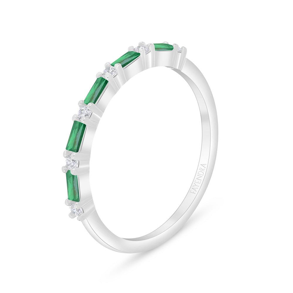 خاتم من الفضة الخالصة عيار 925 مطلي روديوم مرصع زركون زمردي و فص ابيض