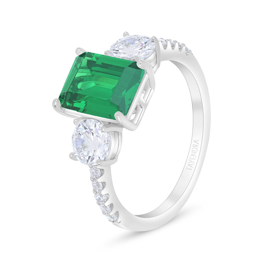 خاتم من الفضة الخالصة عيار 925 مطلي روديوم مرصع زركون زمردي و فص ابيض