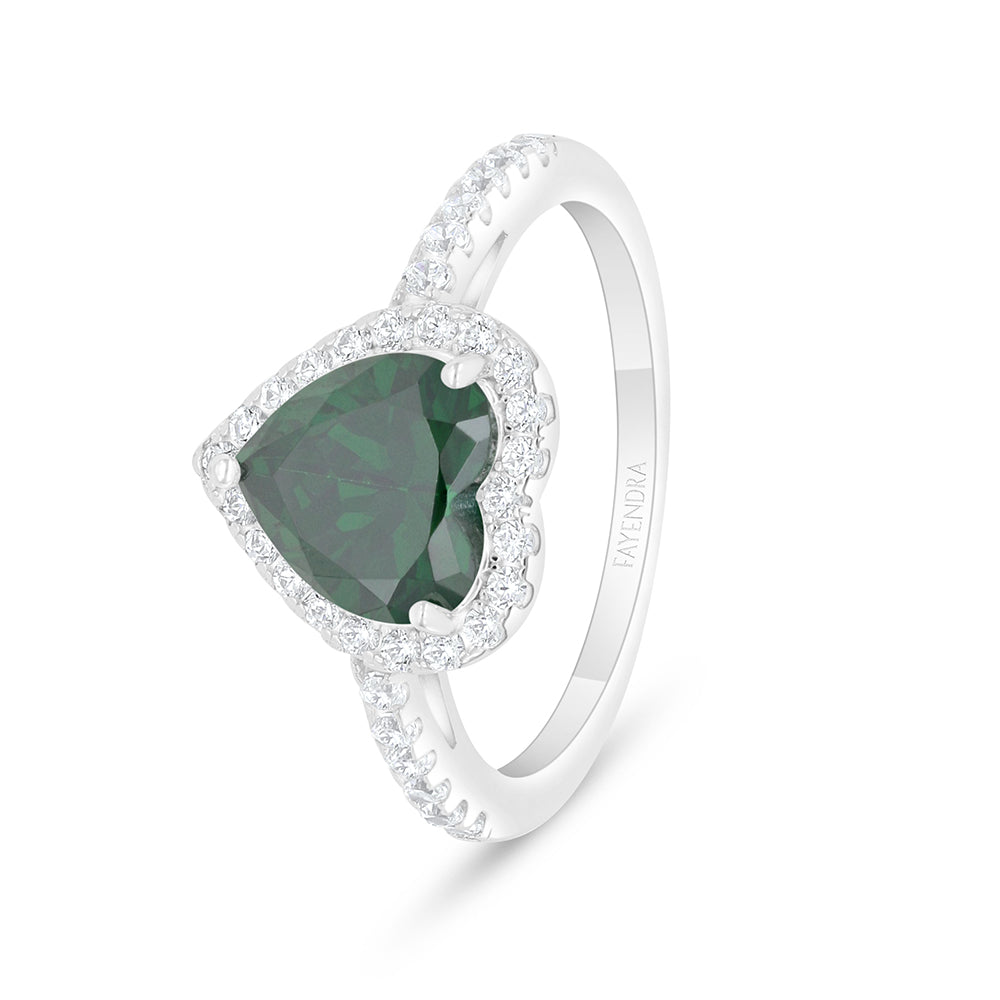 Total Weight: 3.1g اخترنا لكِ من فايندرا خاتم مصنوع من الفضة الخالصة عيار 925، مطلي بطبقة من الروديوم لتعزيز الحماية ولمعان يدوم طويلا. يتميز التصميم بشكل قلب رقيق يتوسطه حجر زركون زمردي بقصة قلب مطابقة بشكل يعكس رقة مشاعرك، تحيط بها أحجار زركون أبيض صغيرة تضيف لمسة من الفخامة والرقي. خيار مثالي للحظاتك الثمينة التي تستحق أن تُخلّد في الذاكرة. اقتنيه الآن!