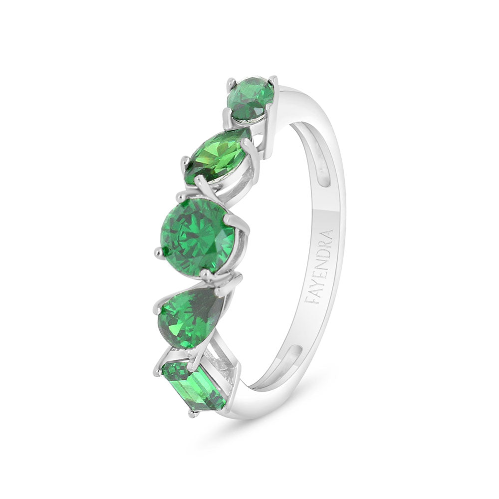 خاتم من الفضة الخالصة عيار 925 مطلي روديوم مرصع زركون زمردي و فص ابيض