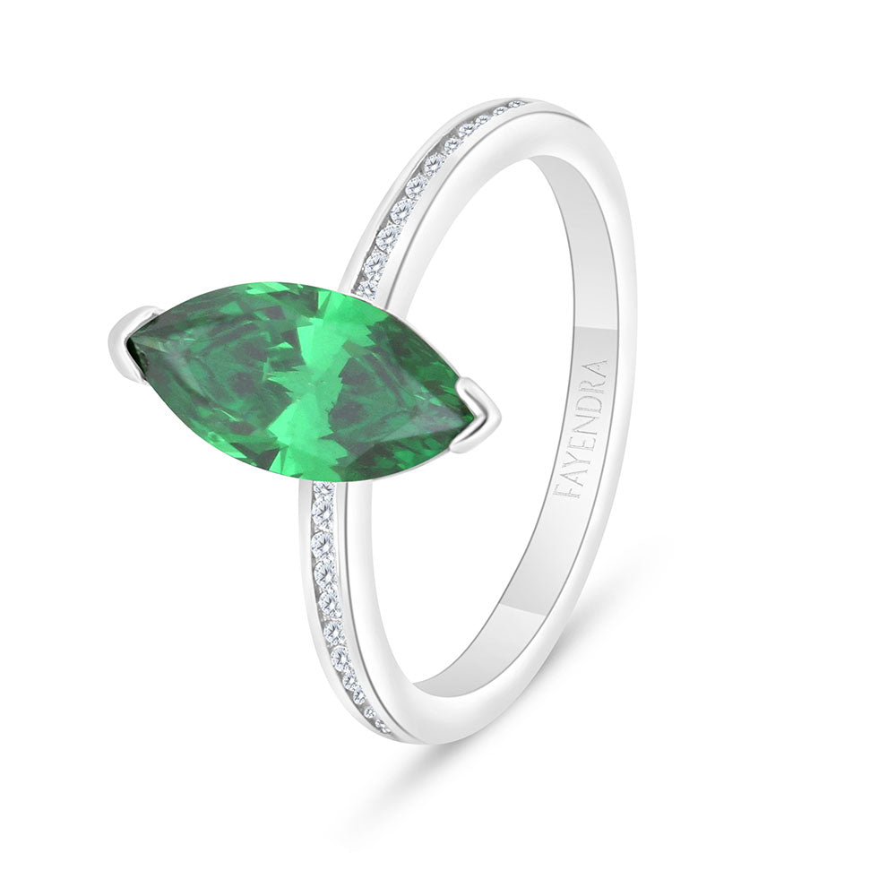 خاتم من الفضة الخالصة عيار 925 مطلي روديوم مرصع زركون زمردي و فص ابيض