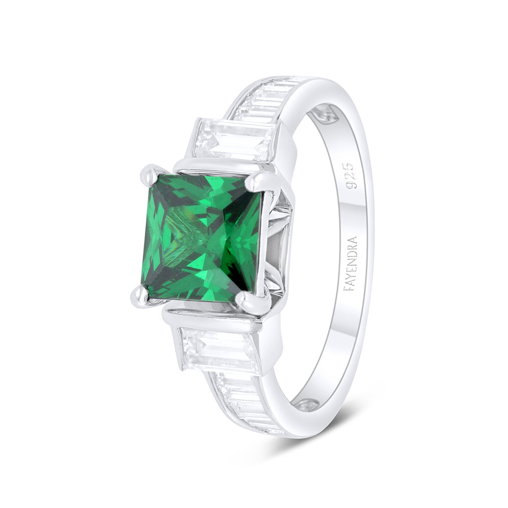 خاتم من الفضة الخالصة عيار 925 مطلي روديوم مرصع زركون زمردي و فص ابيض