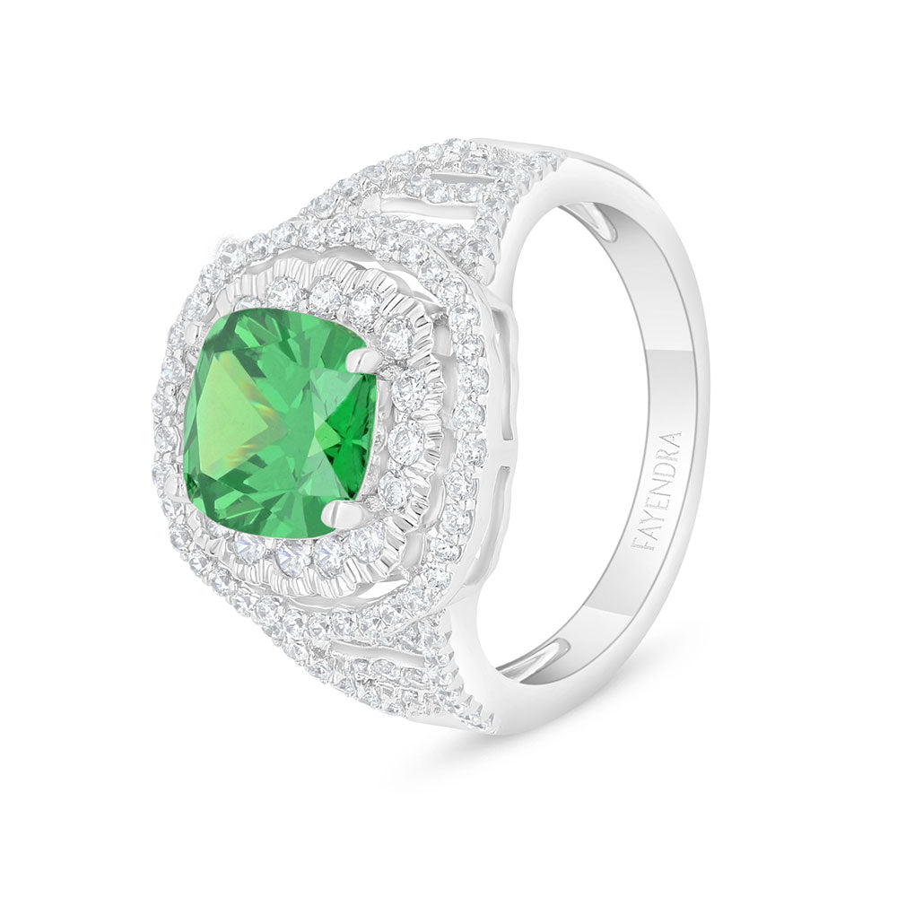 خاتم من الفضة الخالصة عيار 925 مطلي روديوم مرصع زركون زمردي و فص ابيض