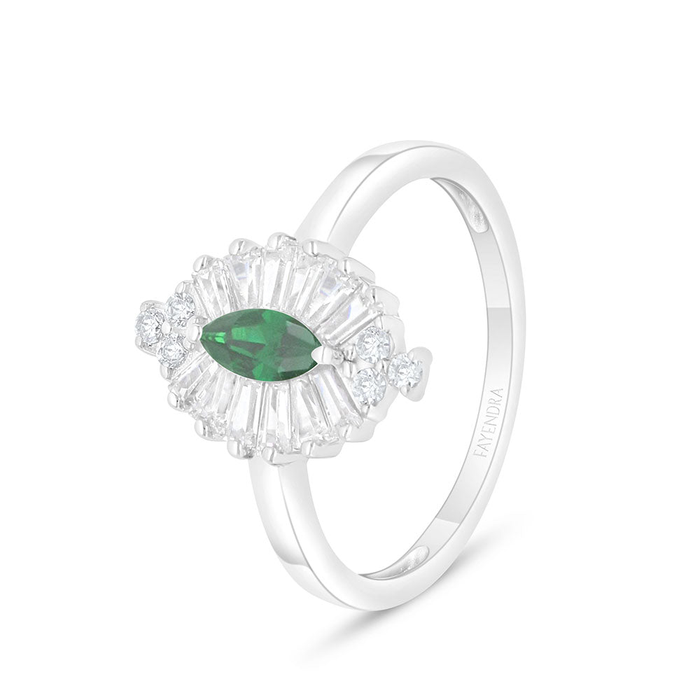 خاتم من الفضة الخالصة عيار 925 مطلي روديوم مرصع زركون زمردي و فص ابيض