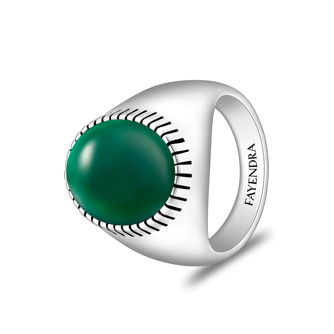 خاتم رجالي من الفضة الخالصة عيار 925 مطلي روديوم مرصع احجار عقيق جاد اخضر كابشون