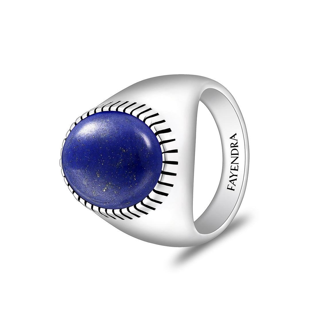 خاتم رجالي من الفضة الخالصة عيار925 مطلي روديوم مرصع حجر لابيس كابشون