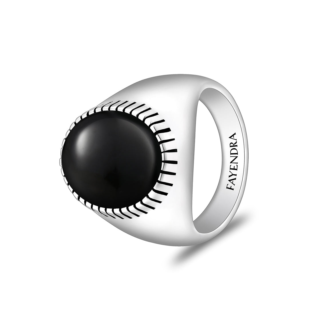 خاتم رجالي من الفضة الخالصة عيار 925 مطلي روديوم مرصع احجار عقيق اسود طبيعي كابشون