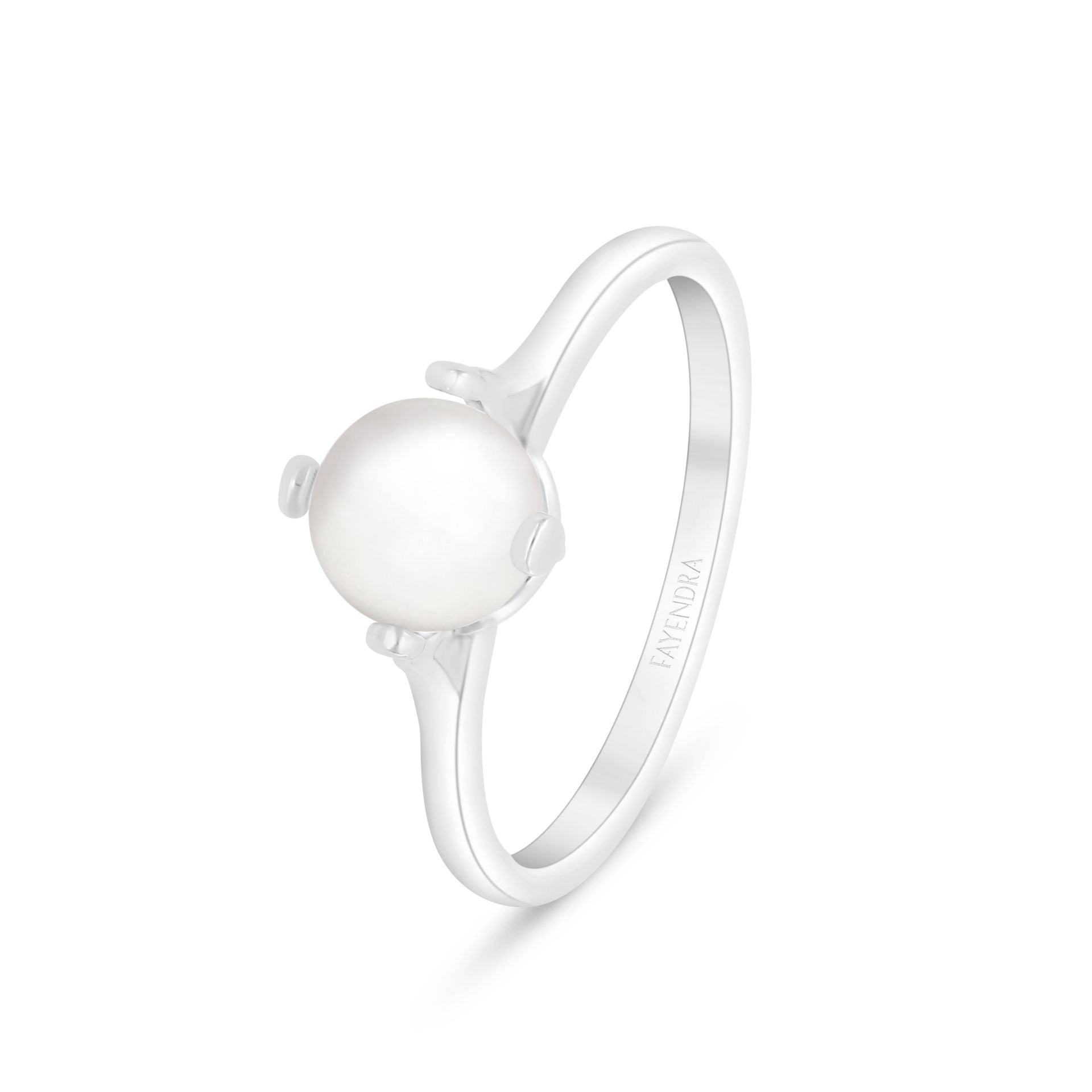 خاتم من الفضة الخالصة عيار 925 مطلي روديوم مرصع لولو ابيض طبيعي