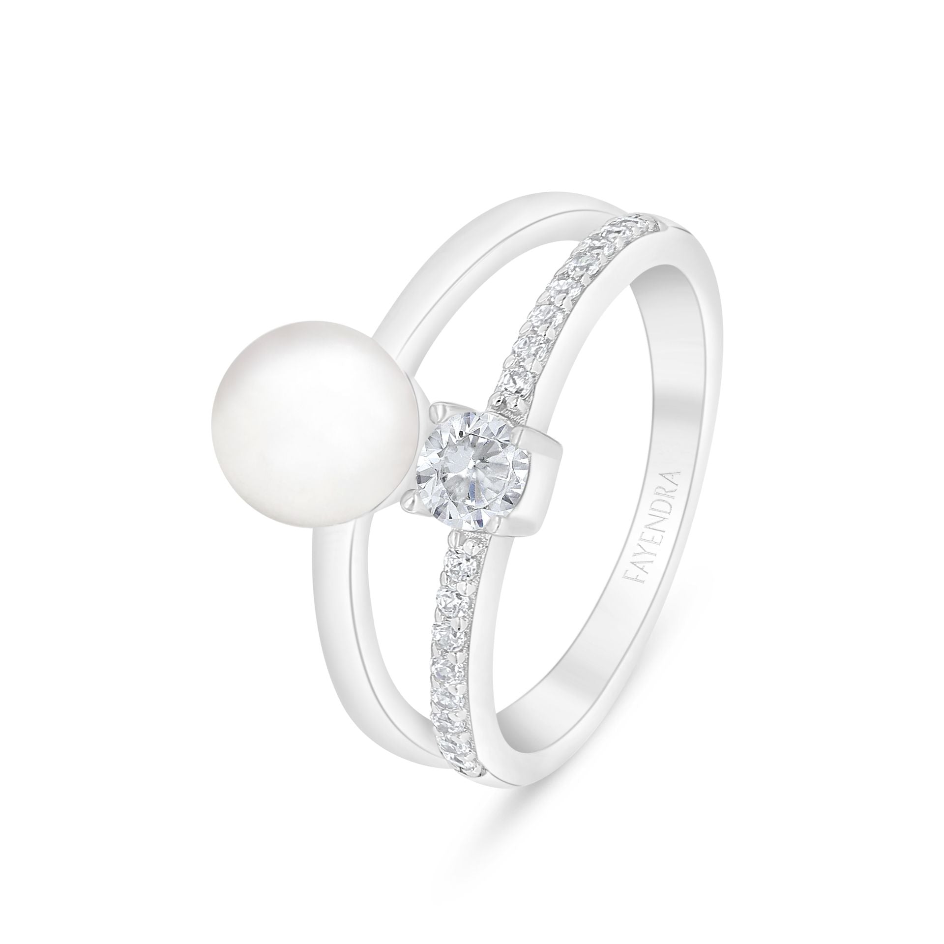 خاتم من الفضة الخالصة عيار 925 مطلي روديوم مرصع لولو ابيض طبيعي و فص ابيض