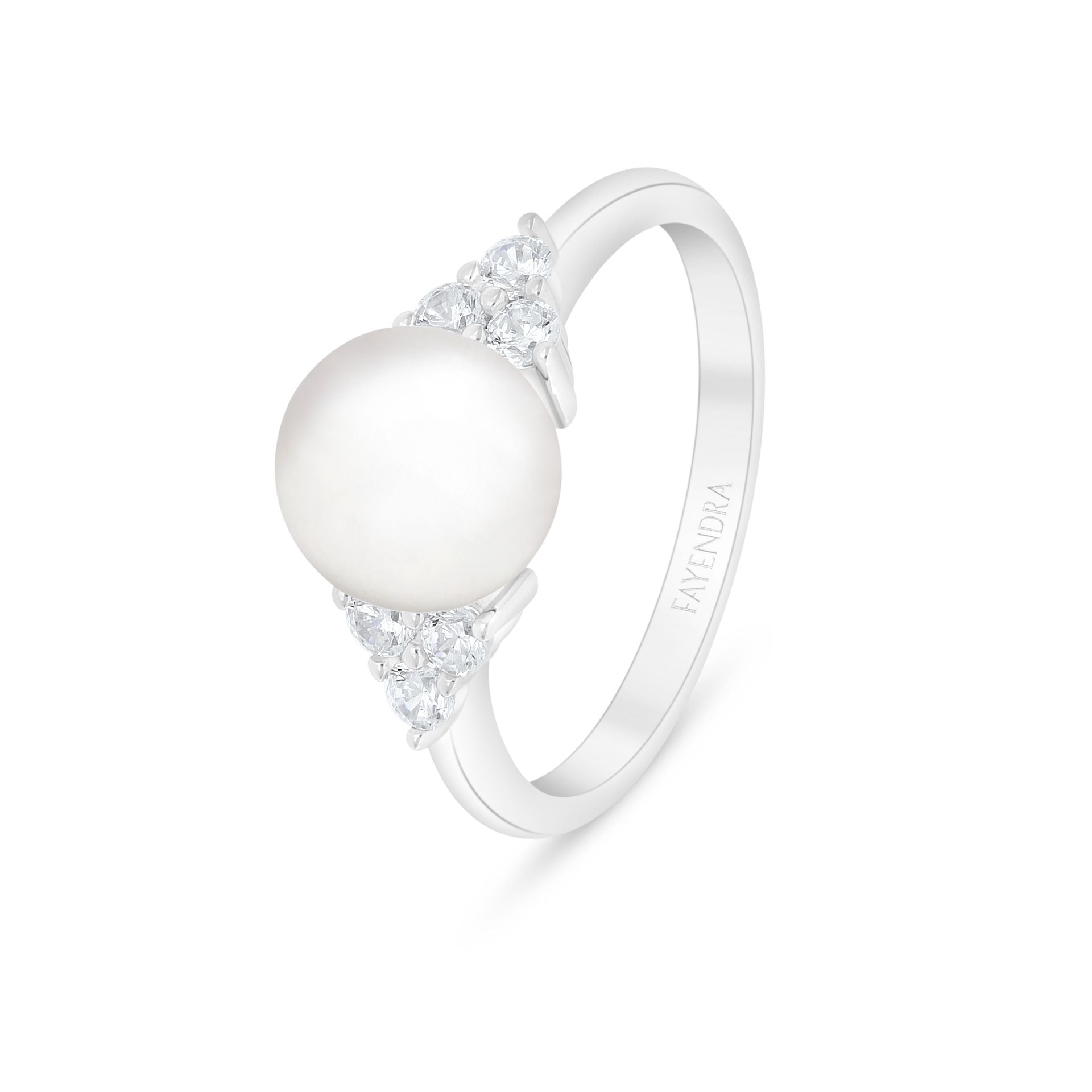 خاتم من الفضة الخالصة عيار 925 مطلي روديوم مرصع لولو ابيض طبيعي و فص ابيض