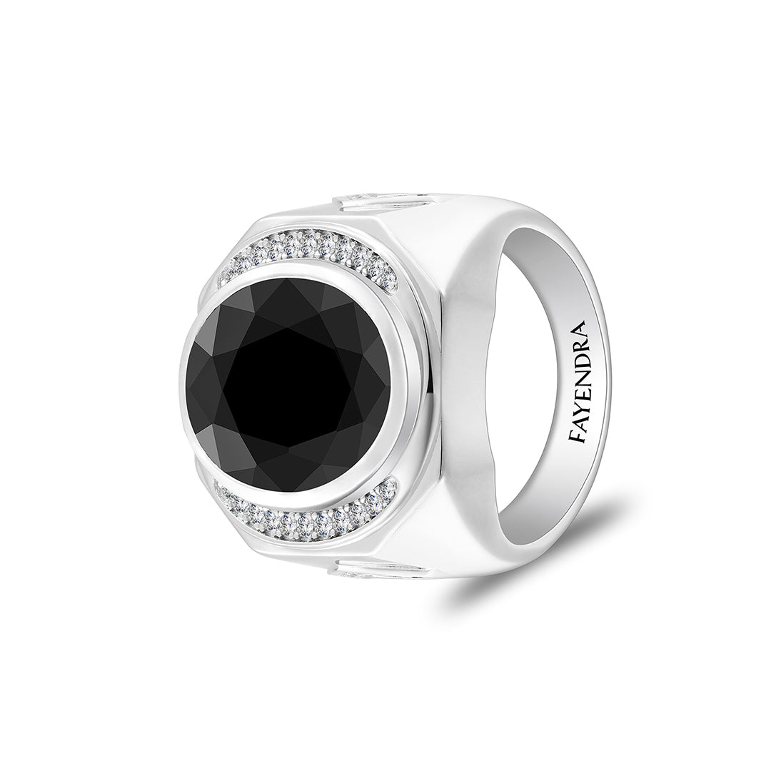 خاتم رجالي من الفضة الخالصة عيار 925 مطلي روديوم مرصع احجار اونكس سبينل و فص ابيض