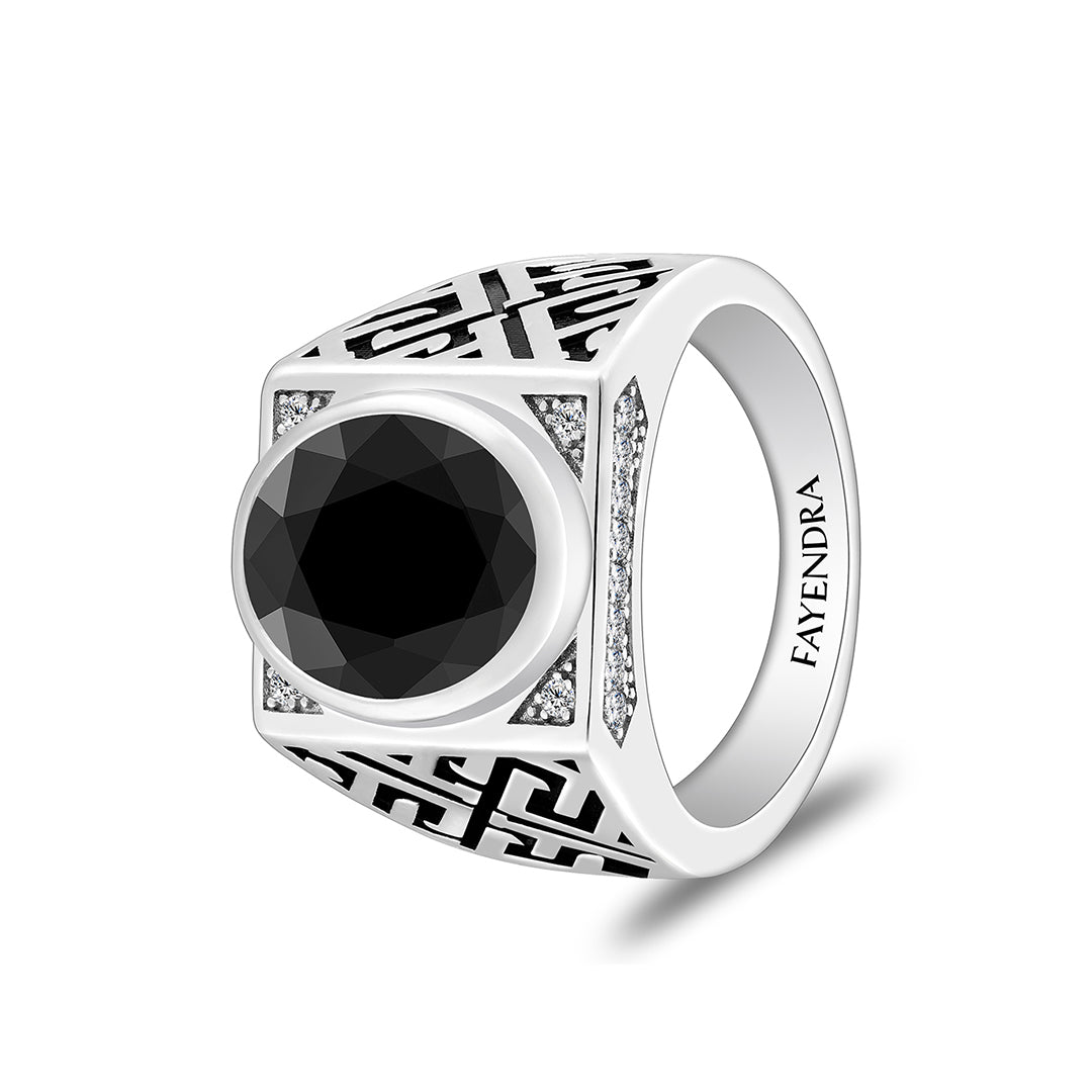 خاتم رجالي من الفضة الخالصة عيار 925 مطلي روديوم مرصع احجار اونكس سبينل و فص ابيض