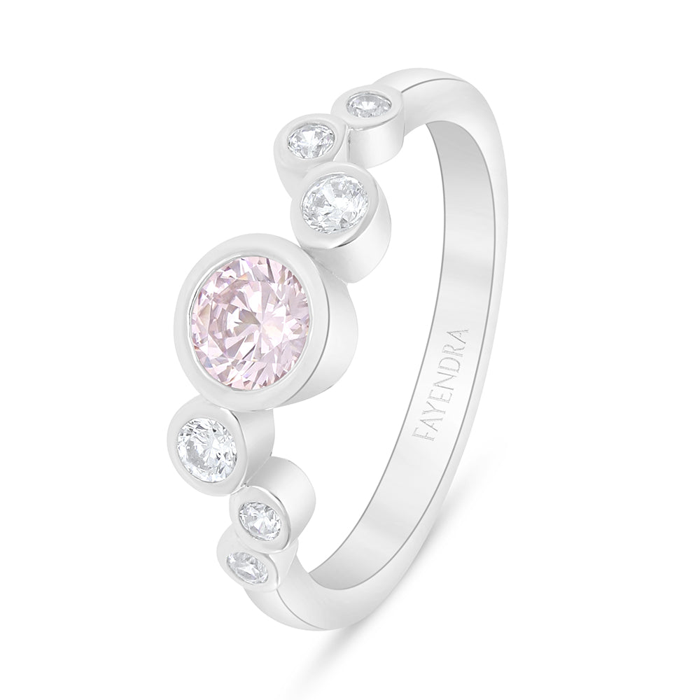 خاتم من الفضة الخالصة عيار 925 مطلي روديوم مرصع زركون بنك و فص ابيض