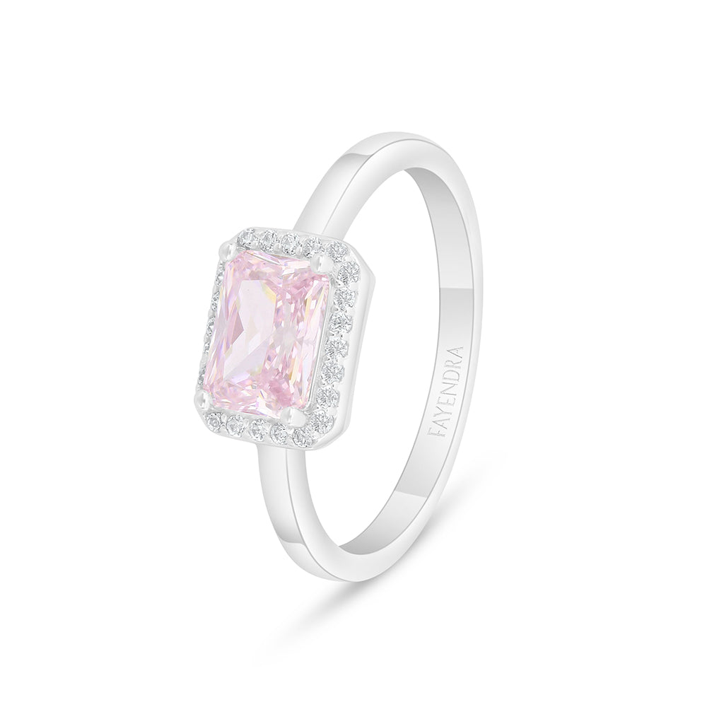 خاتم من الفضة الخالصة عيار 925 مطلي روديوم مرصع زركون بنك و فص ابيض