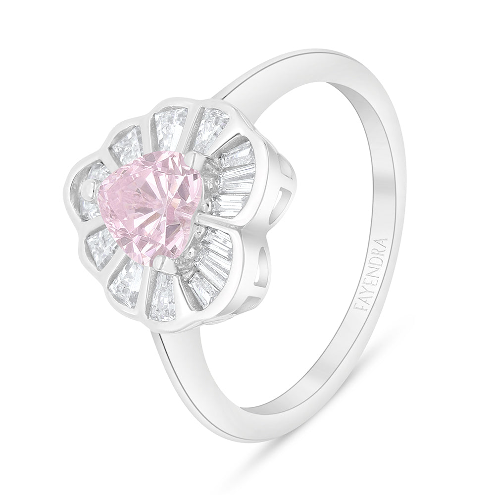 Total Weight: 3g خاتم من فايندرا ينبض بالمشاعر ويهمس بالحب من النظرة الأولى، بتصميم أنيق يتمحور حول قلب متلألئ يروي قصّة أنوثة متفرّدة. في مركز الخاتم يتربّع حجر زركون وردي بقصّة قلب، يشعّ ببريق ناعم يعكس رقّة الإحساس ودفء العاطفة. ويُحيط بهذا القلب البهيّ إطار مصاغ بتوزيع هندسي دقيق من أحجار الزركون البيضاء بقَطع باجيت والمربّع، ليعكس الضوء بزاويا متعدّدة تُضفي على التصميم عمقًا بصريًا راقيًا. صُنع هذا الخاتم من الفضة الخالصة عيار 925 ومغطّى بطبقة روديوم تمنحه إشراقة ناعمة ولمسة نهائية تدوم معك بكل مناسبة. اجعليه يزيّن يدك كلّما رغبتِ في أن تعبّري عن حبّك بأسلوب فاخر. امتلكيه الآن!