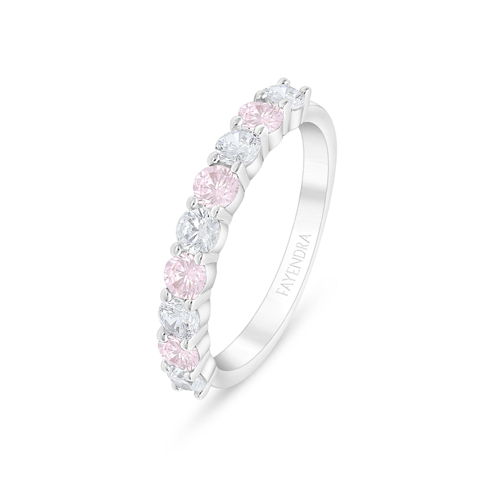 Total Weight: 2.2g أضيئي إطلالتك بلمسة من البهجة! هذا الخاتم اللطيف يعكس الجانب المرح من شخصيتك، بتصميمه الرقيق والمفعم بالحيوية. مصاغ من الفضة الإسترلينية عيار 925، ومطلي بالروديوم ليحافظ على بريقه لأطول فترة ممكنة. يتميز بإطار فضي ناعم، مرصوف بالكامل بأحجار الزركون الأبيض والزهري التي تتناغم معًا في لوحة من الإشراق والتألق.