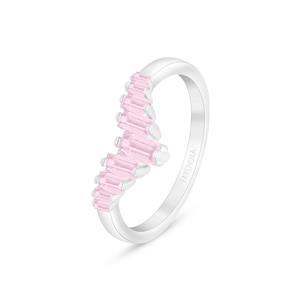 Total Weight: 2.3g كوني رمز للأناقة الراقية والبساطة المتقنة مع هذا الخاتم المميز، المصاغ من الفضة الإسترلينية عيار 925، والمطلي بالروديوم للحفاظ على لمعانه وبريقه. يتألق بتصميم فريد يزينه صف من أحجار الزركون الزهري المقطوعة بقصة باغيت الباهرة، ليمنحك إشراقة مختلفة تخطف الأنظار في كل مناسبة. قطعة مثالية لإطلالة يومية راقية أو لإضفاء لمسة فاخرة على أمسياتك الخاصة. اجعليه جزءًا من مجموعتك الآن!