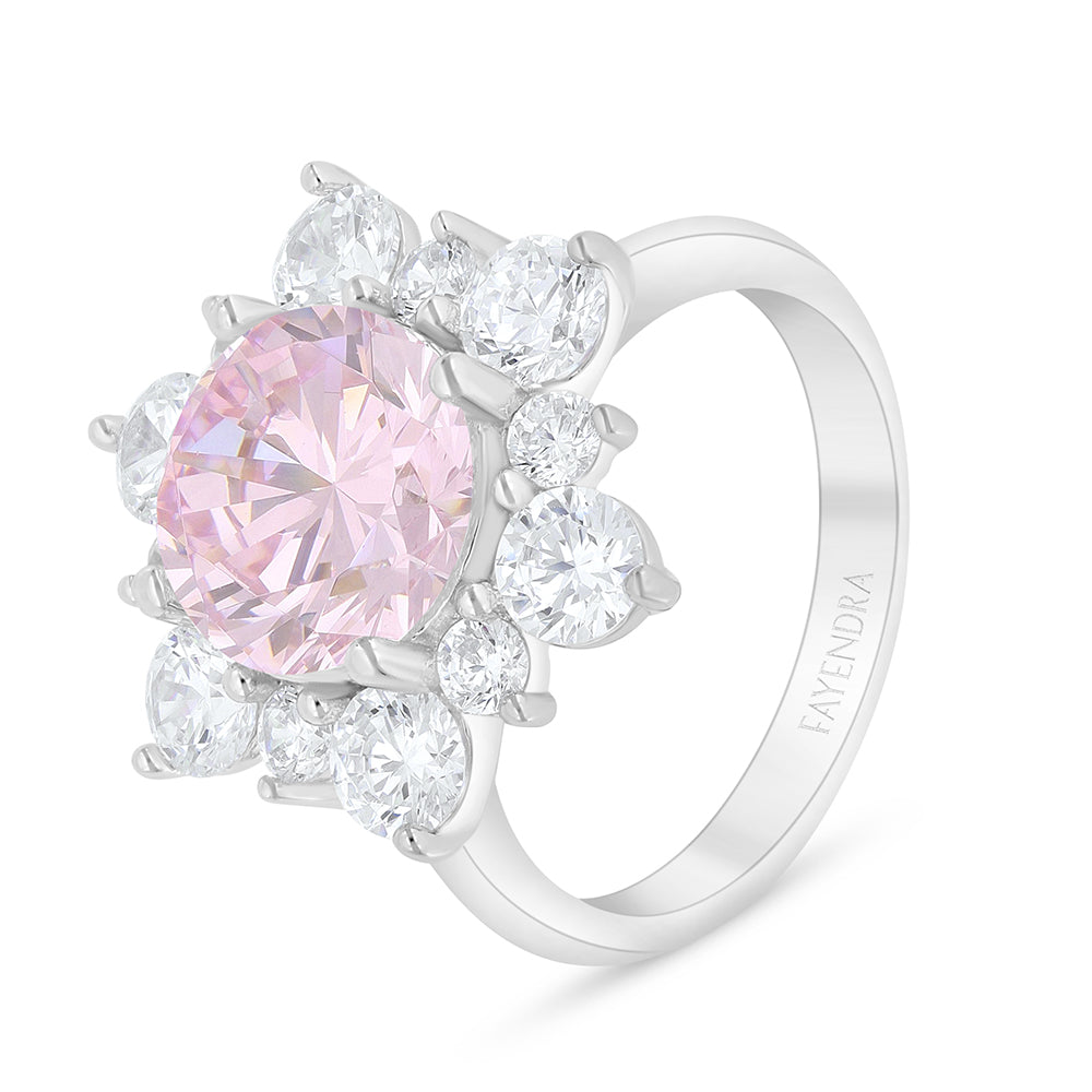 Total Weight: 5.7g اجعلي أناقتك تنطق بذوقك الرفيع مع هذا الخاتم الفاخر، المصاغ من فضة إسترلينية عيار 925 والمغطى بطبقة روديوم للحماية ولمعان يدوم. يزدان الخاتم بحجر زركون زهري مصقول بقصة زهرة أنيقة، تحيط به أحجار زركون أبيض بأحجام متفاوتة تمنحه مظهر الزهرة المتفتحة وبريقًا يخطف الأنظار. مما يضفي لمسة من التميز والرقي تكمّل إطلالتك. تسوّقيه الآن!