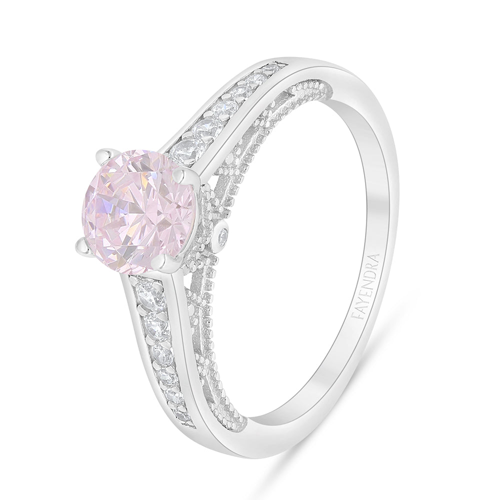 خاتم من الفضة الخالصة عيار 925 مطلي روديوم مرصع زركون بنك و فص ابيض