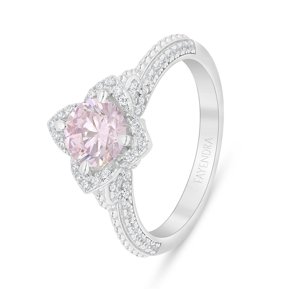 خاتم من الفضة الخالصة عيار 925 مطلي روديوم مرصع زركون بنك و فص ابيض