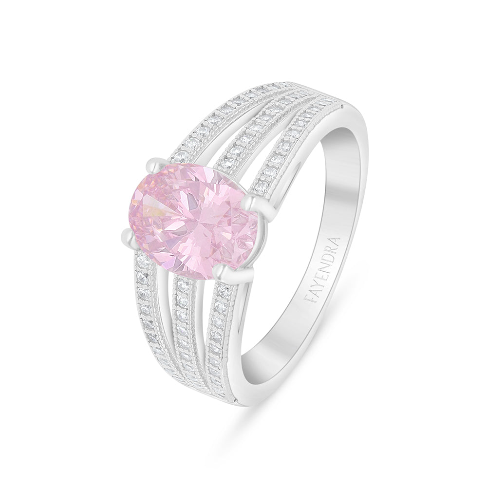 خاتم من الفضة الخالصة عيار 925 مطلي روديوم مرصع زركون بنك و فص ابيض