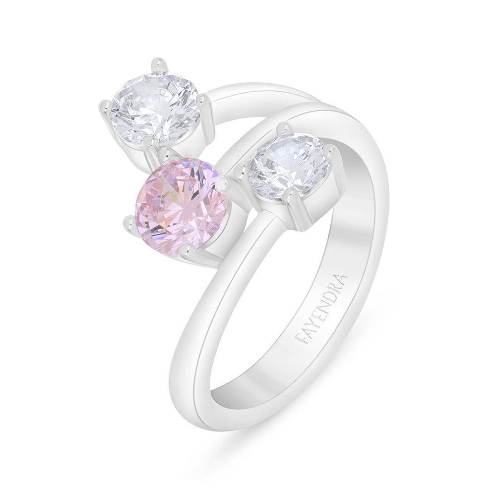 خاتم من الفضة الخالصة عيار 925 مطلي روديوم مرصع زركون بنك و فص ابيض