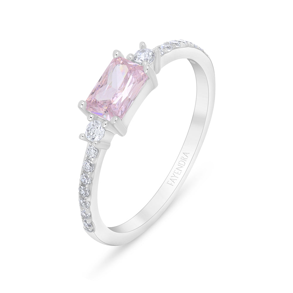 خاتم من الفضة الخالصة عيار 925 مطلي روديوم مرصع زركون بنك و فص ابيض