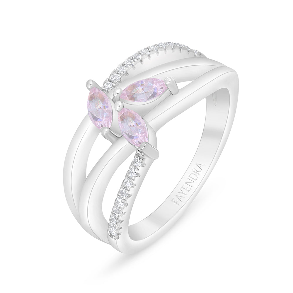 خاتم من الفضة الخالصة عيار 925 مطلي روديوم مرصع زركون بنك و فص ابيض