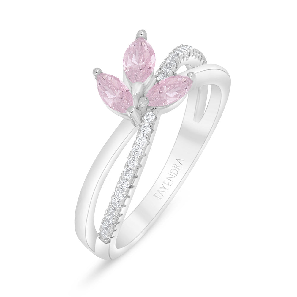 خاتم من الفضة الخالصة عيار 925 مطلي روديوم مرصع زركون بنك و فص ابيض