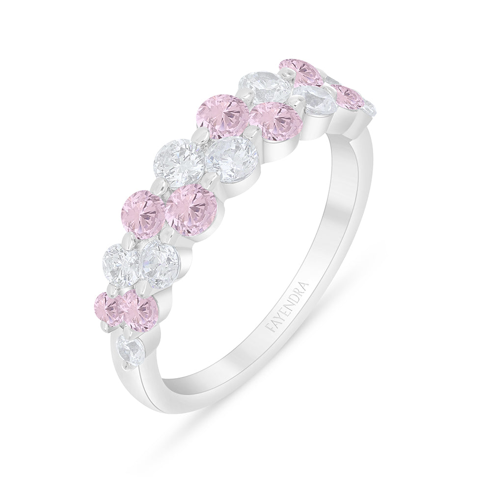 خاتم من الفضة الخالصة عيار 925 مطلي روديوم مرصع زركون بنك و فص ابيض