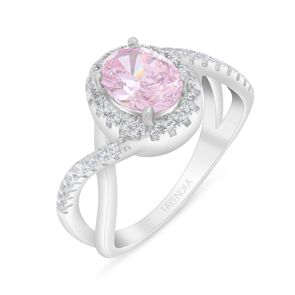 خاتم من الفضة الخالصة عيار 925 مطلي روديوم مرصع زركون بنك و فص ابيض