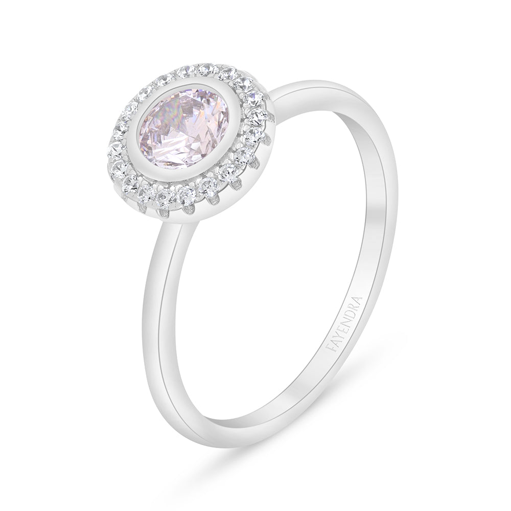 خاتم من الفضة الخالصة عيار 925 مطلي روديوم مرصع زركون بنك و فص ابيض