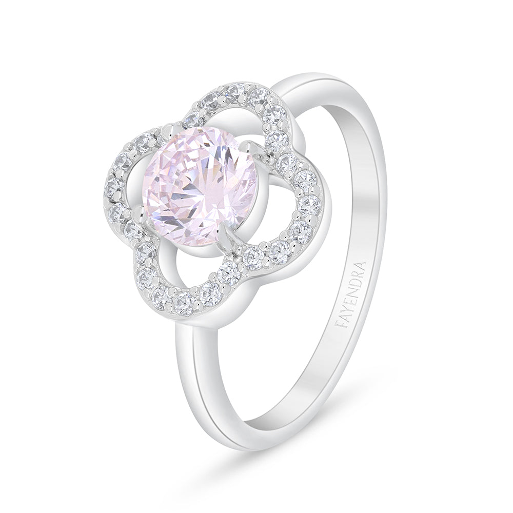 خاتم من الفضة الخالصة عيار 925 مطلي روديوم مرصع زركون بنك و فص ابيض
