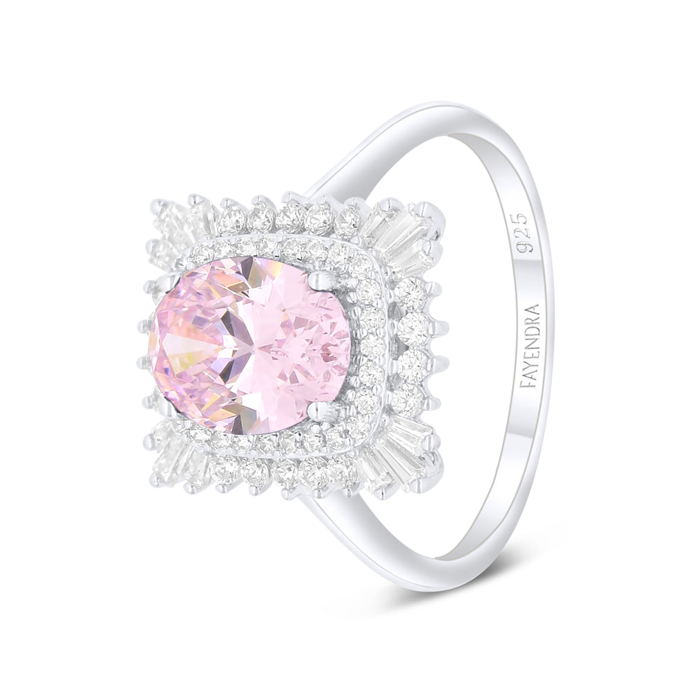 خاتم من الفضة الخالصة عيار 925 مطلي روديوم مرصع زركون بنك و فص ابيض
