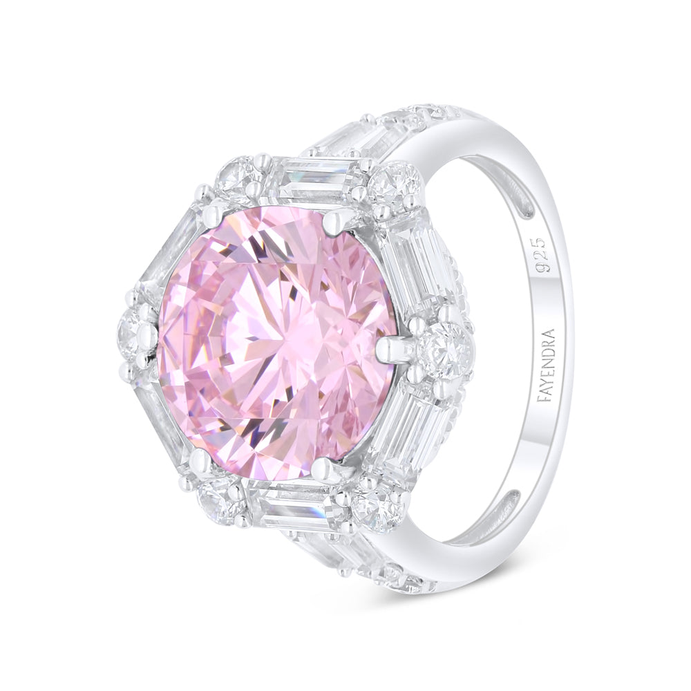 خاتم من الفضة الخالصة عيار 925 مطلي روديوم مرصع زركون بنك و فص ابيض