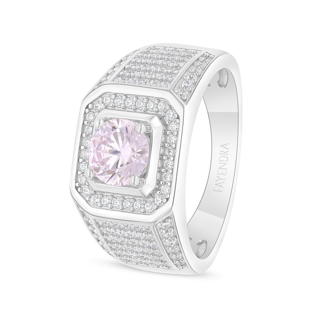 خاتم من الفضة الخالصة عيار 925 مطلي روديوم مرصع زركون بنك و فص ابيض