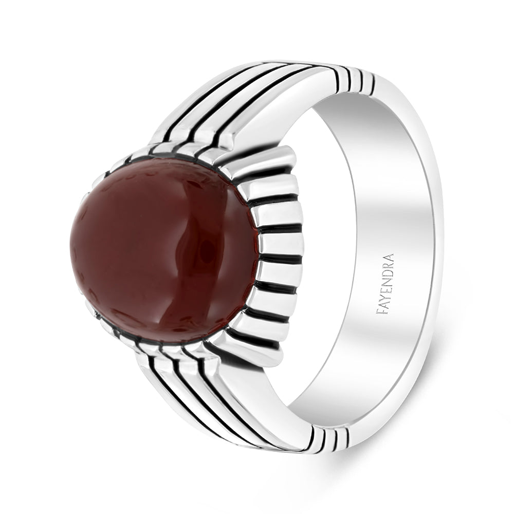 خاتم رجالي فضة عيار 925 مطلي روديوم مرصع احجار عقيق طبيعي