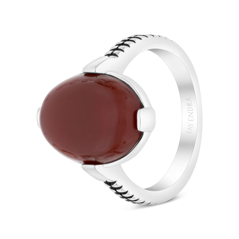 خاتم رجالي فضة عيار 925 مطلي روديوم مرصع احجار عقيق طبيعي