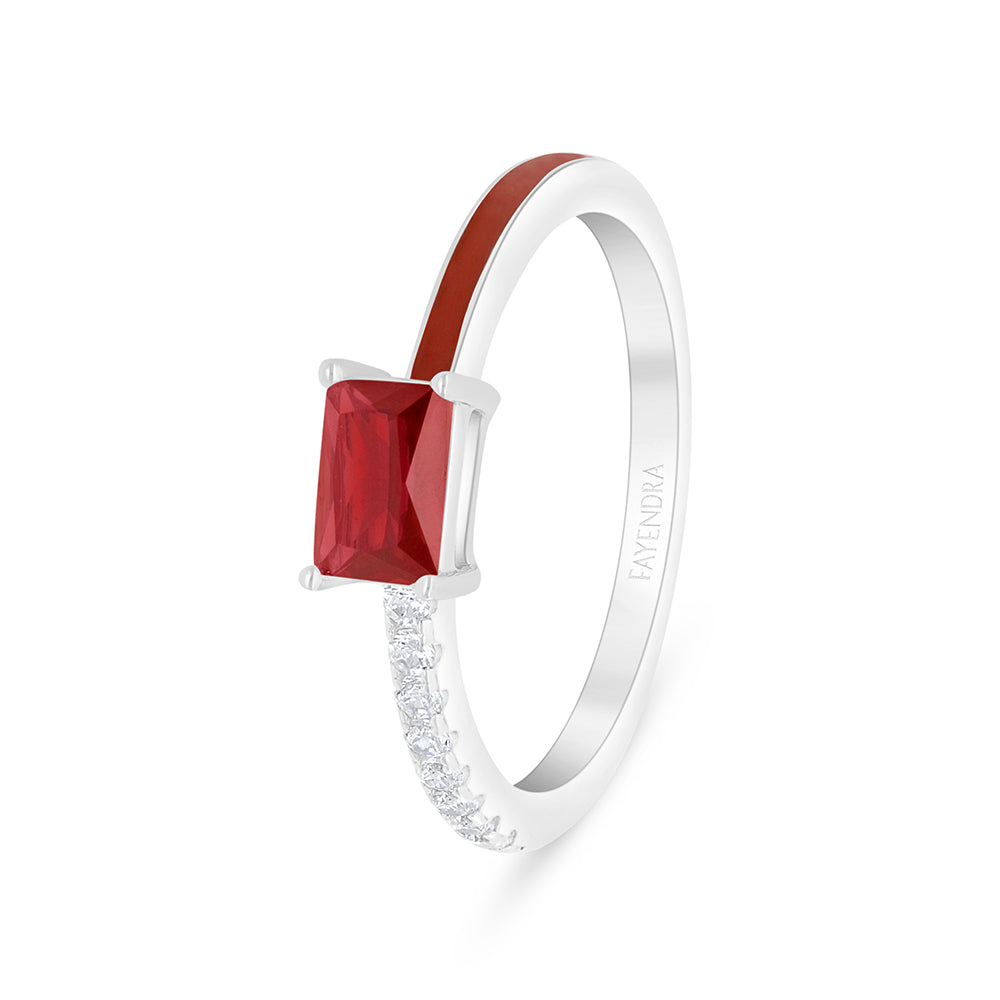 خاتم من الفضة الخالصة عيار 925 مطلي روديوم مرصع ياقوت كروندوم و انميل احمر و فص ابيض