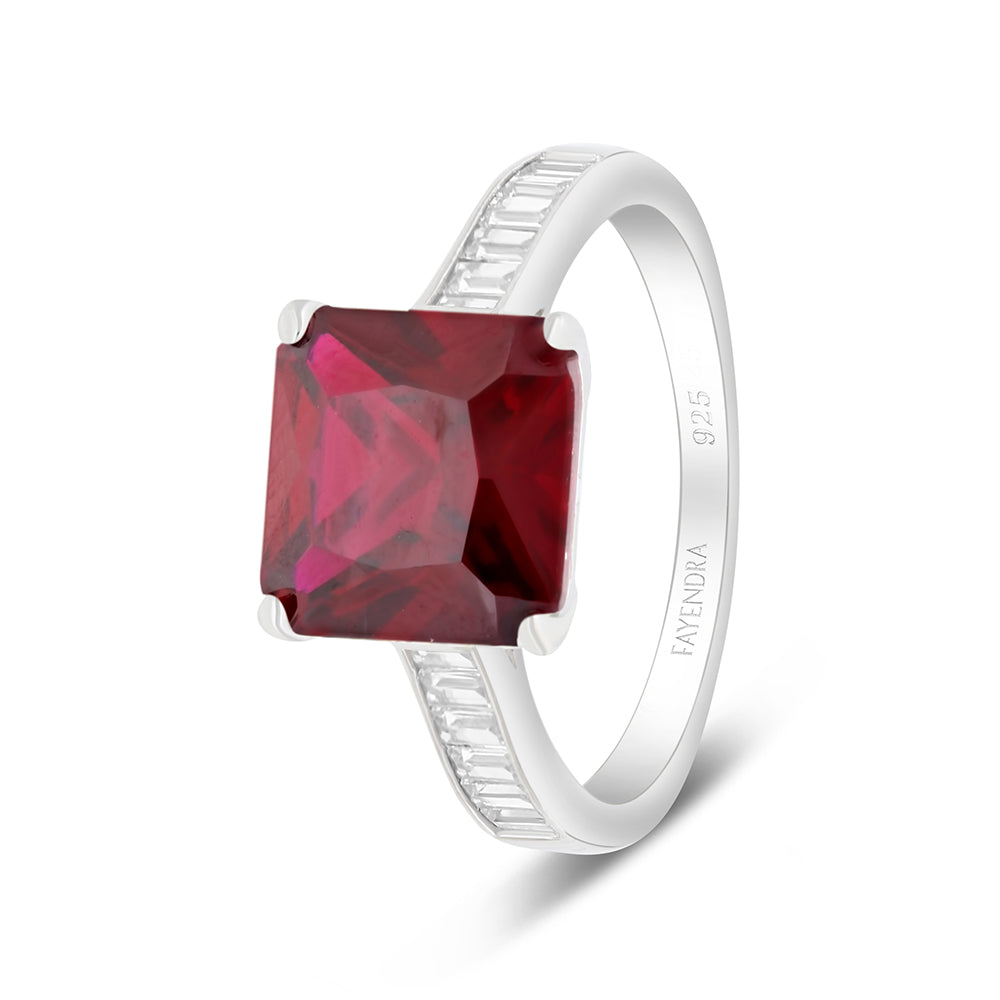 احتضني تفاصيل الأناقة بين يديك و تألقي بإطلالة جذابة مع هذا الخاتم الفريد من فايندرا المرصع بأحجار الزركون اللامعة وحجر ياقوت كورندوم بلون خلّابِ.