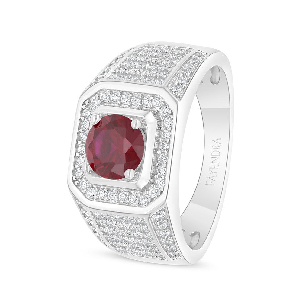 خاتم من الفضة الخالصة عيار 925 مطلي روديوم مرصع ياقوت كروندوم و فص ابيض