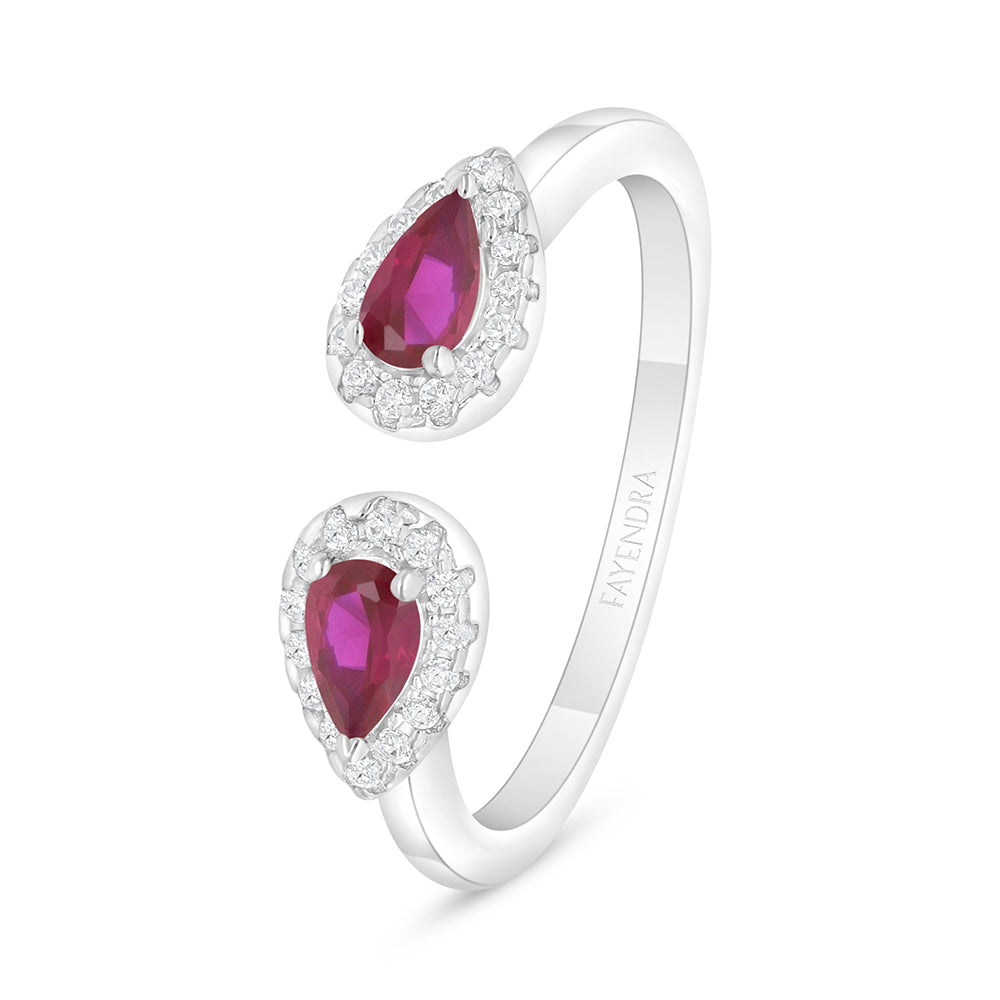 Total Weight :2.3g تألقي بإطلالة ساحرة مستوحاة من جمال الطبيعة مع هذا الخاتم الفريد من فايندرا من الفضة الخالصة عيار 925 مطلي بالروديوم ومصمم بتفاصيل دقيقة ومزين بأحجار الزيركون الأبيض المتلألئة ،يتوسطه حجر ياقوت كوروندوم بتصميم رائع يشبه قطرتي ندى، مما يضفي لمسة من الرقة والجمال على الشكل. استمتعي بأناقة عصرية كل يوم مع هذا الخاتم الذي يضيف لمسة من الجاذبية الخاصة إلى إطلالتك. لا تفوتي الفرصة، أضيفيه إلى سلتك الآن!