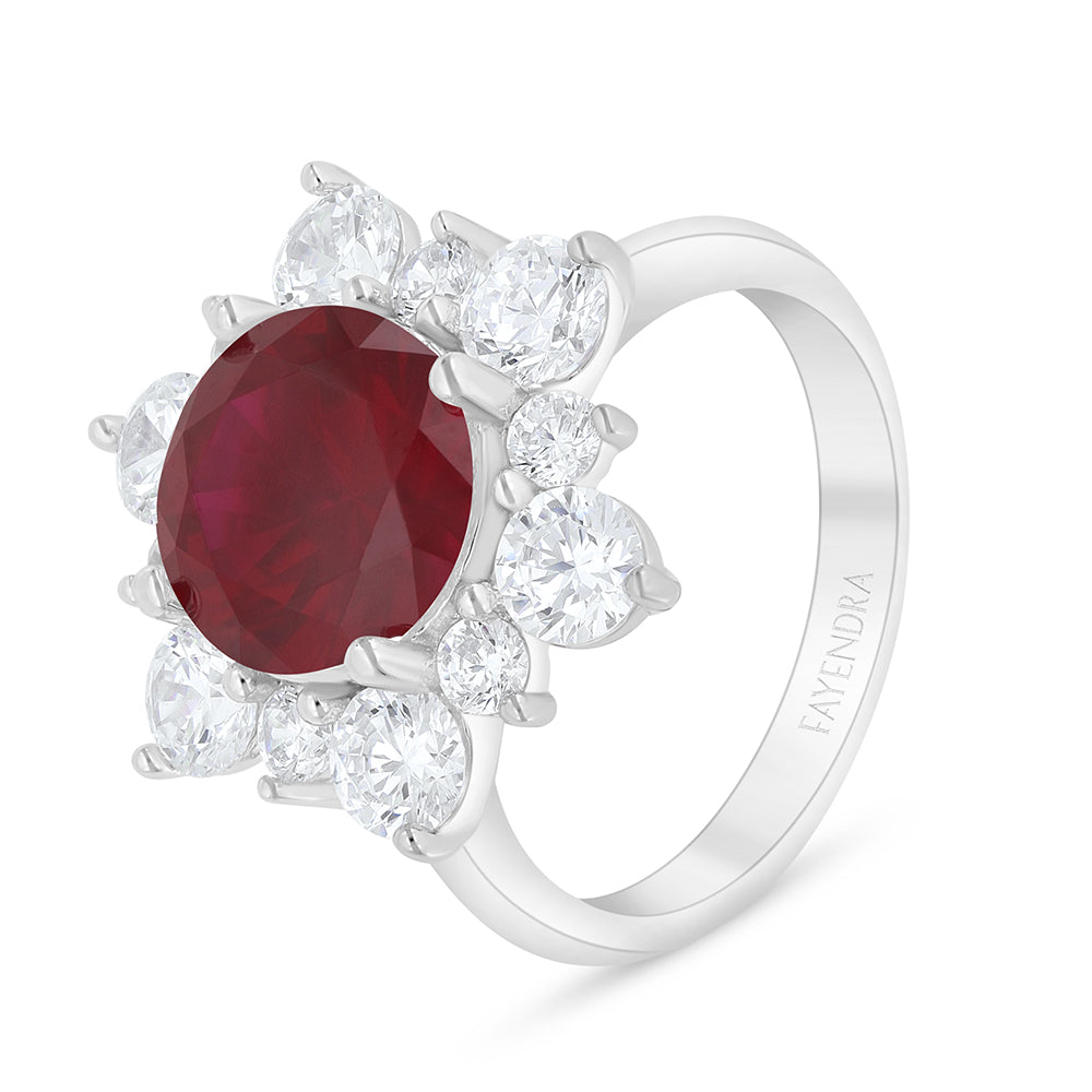 Total Weight: 5.7g اجعلي أناقتك تنطق بذوقك الرفيع مع هذا الخاتم الفاخر، المصاغ من فضة إسترلينية عيار 925 والمغطى بطبقة روديوم للحماية ولمعان يدوم. يزدان الخاتم بحجر ياقوت كروندوم مصقول بقصة زهرة أنيقة، تحيط به أحجار زركون أبيض بأحجام متفاوتة تمنحه مظهر الزهرة المتفتحة وبريقًا يخطف الأنظار. مما يضفي لمسة من التميز والرقي تكمّل إطلالتك. تسوّقيه الآن!