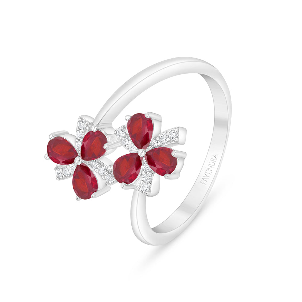 Total Weight: 3.3g كوني كالوردة، إشراقًا ورقّة، مع هذا الخاتم الفاخر المصاغ من الفضة الإسترلينية عيار 925 والمطلي بطبقة من الروديوم لحماية دائمة للبريق. تصميم يأسر الأنفاس بأحجار الياقوت كروندوم والزركون الأبيض، المقطوعة بإتقان بقصّتي البريليانت والدمعة، لترصّع جنبًا إلى جنب، مجسّدة بتلات زهرة متوهّجة. على إطار مصمّم بإطار مفتوح ومرن، في لوحة لونية رقيقة تجمع بين عفوية الطبيعة وأناقة التفاصيل الراقية. أضيفيه الآن إلى مجموعتك!