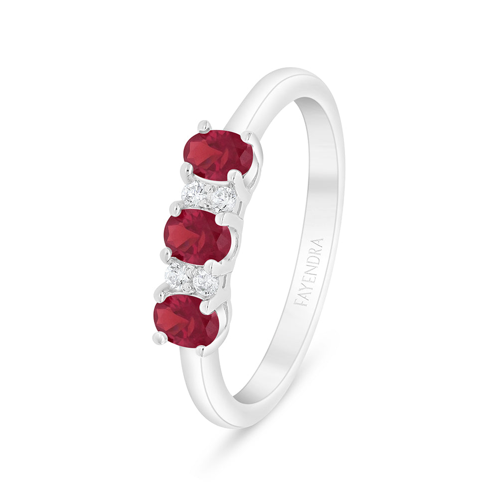 خاتم من الفضة الخالصة عيار 925 مطلي روديوم مرصع ياقوت كروندوم و فص ابيض