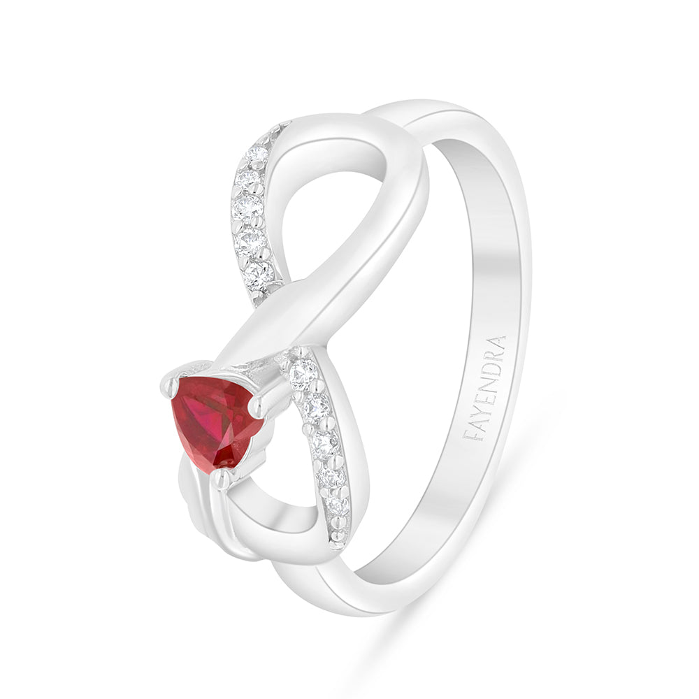 خاتم من الفضة الخالصة عيار 925 مطلي روديوم مرصع ياقوت كروندوم و فص ابيض