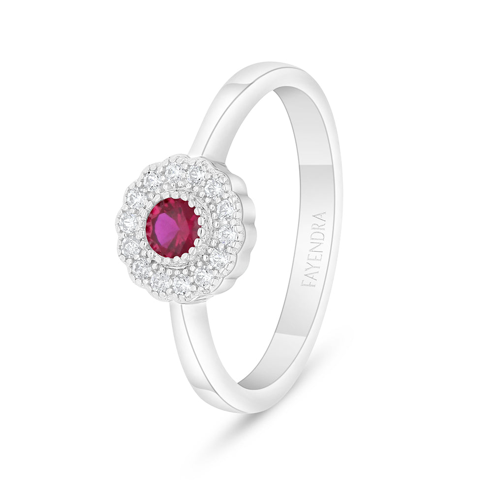 خاتم من الفضة الخالصة عيار 925 مطلي روديوم مرصع ياقوت كروندوم و فص ابيض