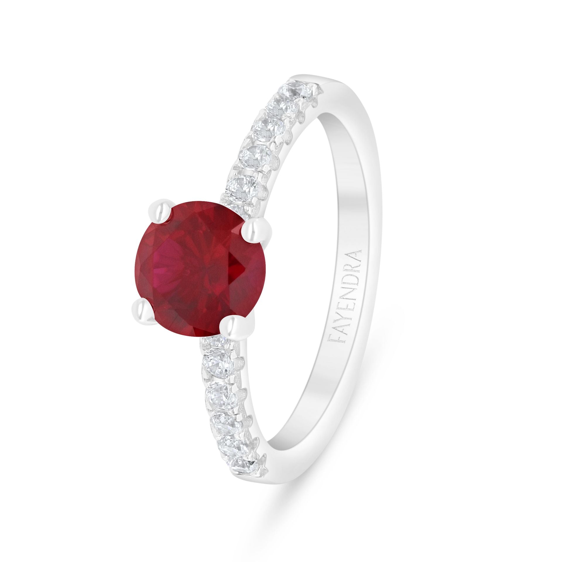 خاتم من الفضة الخالصة عيار 925 مطلي روديوم مرصع ياقوت كروندوم و فص ابيض