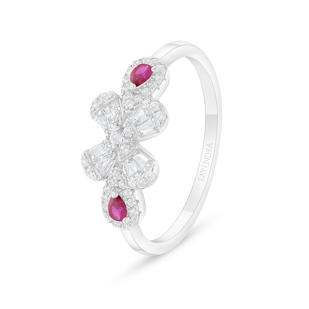 خاتم من الفضة الخالصة عيار 925 مطلي روديوم مرصع ياقوت كروندوم و فص ابيض